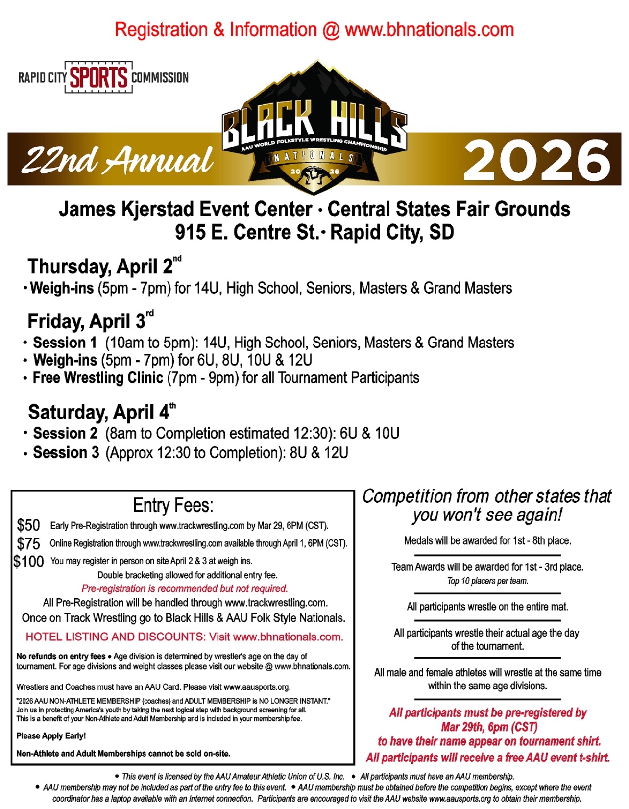 - Black Hills Nationals – Rapid City, SD – April 2-4, 2026